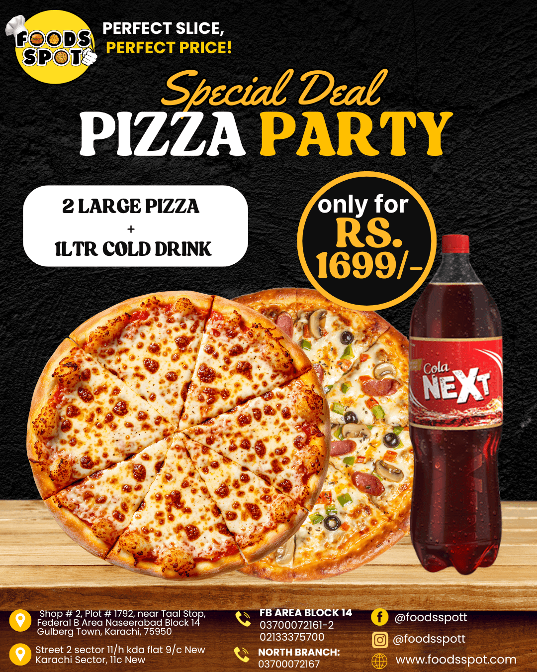 2 LARGE pizzas + 1 ltr Cold Drink